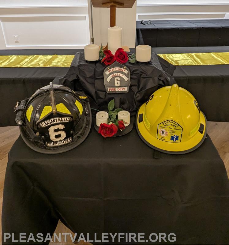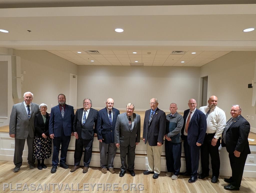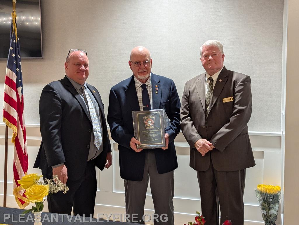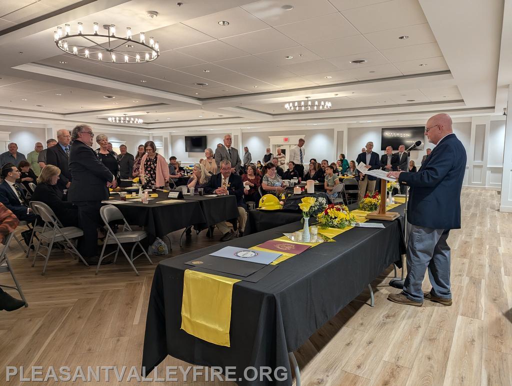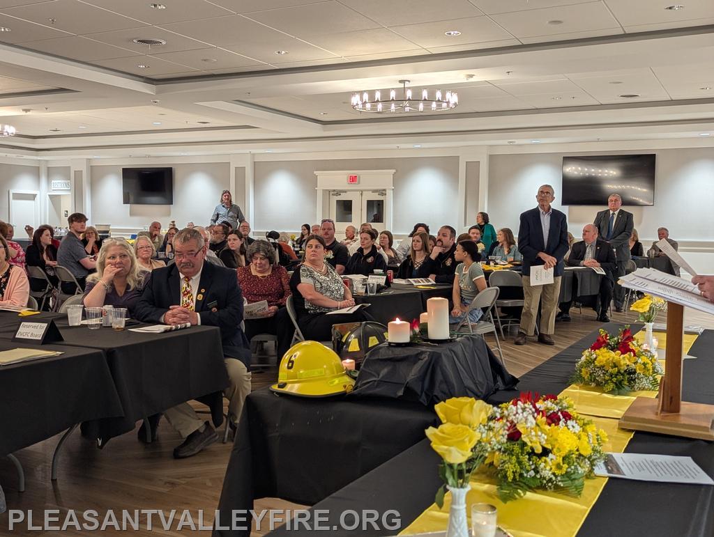 On March 20, 1931, thirty men envisioned the need for fire protection in our community and organized the Pleasant Valley Community Fire Company. We gathered to celebrated 95 years on Saturday March 21, 2026 . Commissioner Joseph Vigliotti and our secretary welcomed our guests as they entered the social hall for the evening’s events. Other guests included Maryland State Firefighters Association Vice President William Faust and his wife, Carroll County Volunteer Emergency Services Association Treasurer Mary Carole Stiffler, Carroll County Sheriff’s Office Colonel David Stem with his wife and Director Michael Robinson and his wife. After a delicious meal, the program began with our memorial service to honor those lost during the past year. Pastor Sam Chamelin shared comforting memories of our senior member Ronald Walters and junior member Cash Owings. The officers of the senior company, auxiliary and junior membership were introduced. The evening celebrated our members who received awards for hours of fundraising and fire/EMS responses. We also recognized our members with over fifty years of service, life members, MSFA Hall of Fame & Carroll County Hall Fame and our military veterans. Pastor Chamelin was presented an honorary membership. Without all these members, Pleasant Valley Community Fire Company could not provide the excellent fire and EMS service to our community. Please enjoy our photos from the evening.