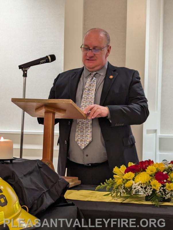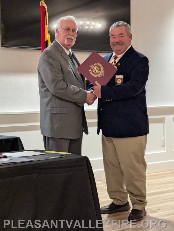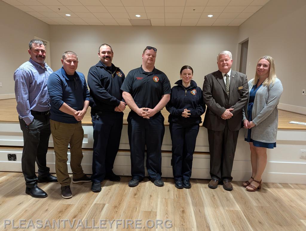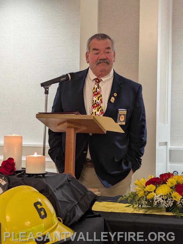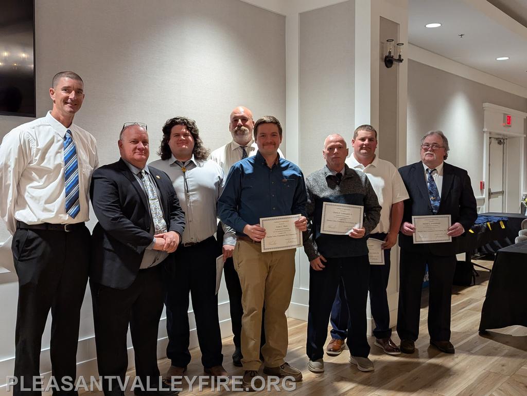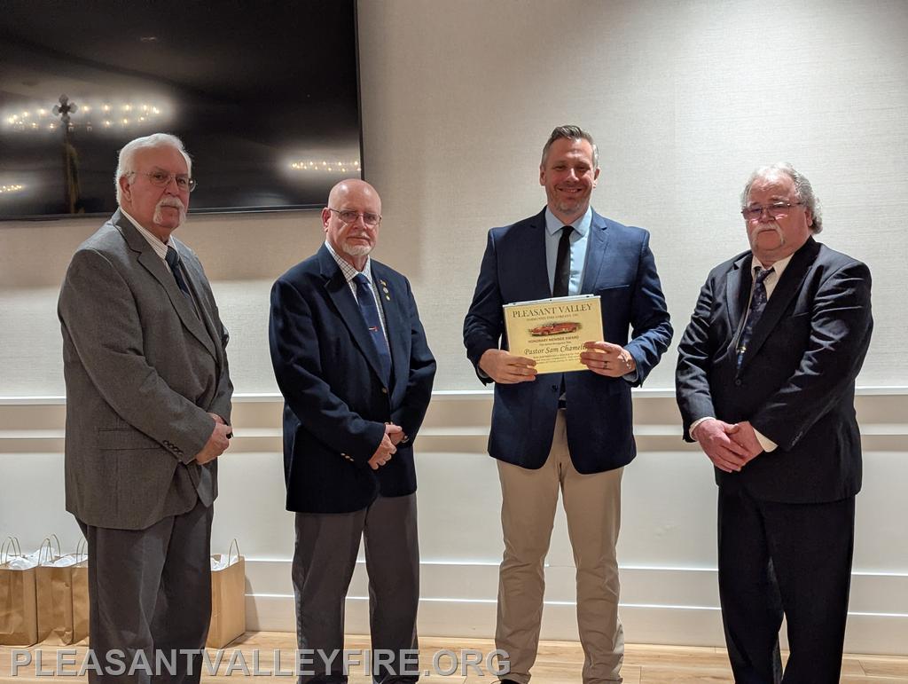 On March 20, 1931, thirty men envisioned the need for fire protection in our community and organized the Pleasant Valley Community Fire Company. We gathered to celebrated 95 years on Saturday March 21, 2026 . Commissioner Joseph Vigliotti and our secretary welcomed our guests as they entered the social hall for the evening’s events. Other guests included Maryland State Firefighters Association Vice President William Faust and his wife, Carroll County Volunteer Emergency Services Association Treasurer Mary Carole Stiffler, Carroll County Sheriff’s Office Colonel David Stem with his wife and Director Michael Robinson and his wife. After a delicious meal, the program began with our memorial service to honor those lost during the past year. Pastor Sam Chamelin shared comforting memories of our senior member Ronald Walters and junior member Cash Owings. The officers of the senior company, auxiliary and junior membership were introduced. The evening celebrated our members who received awards for hours of fundraising and fire/EMS responses. We also recognized our members with over fifty years of service, life members, MSFA Hall of Fame & Carroll County Hall Fame and our military veterans. Pastor Chamelin was presented an honorary membership. Without all these members, Pleasant Valley Community Fire Company could not provide the excellent fire and EMS service to our community. Please enjoy our photos from the evening.