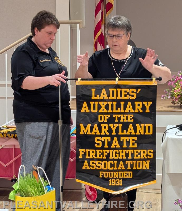 Ladies Auxiliary to the Maryland State Firefighters Association (LAMSFA) Spring Conference was held at Pleasant Valley Community Fire Company on April 25, 2026. Along with their usual business the auxiliary held multiple fundraising raffles, learned a new perspective on "retention & recruitment" from Jonathan Dayton, introduced there updated banner and honored their own. Dennis Beard was presented a donation for the Maryland Fire-Rescue Memorial Foundation from Anne Arundel Fire Department. A special thanks for all they do to support the Maryland Fire/EMS services.